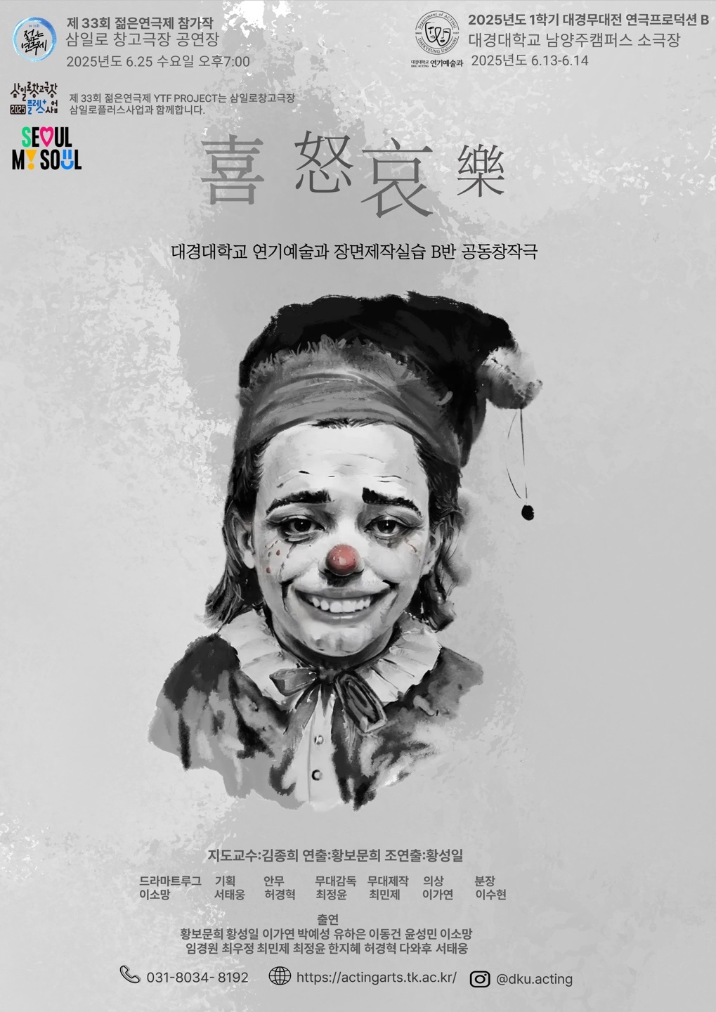 안녕하십니까. 이번 장면 제작 실습에서 총 연출 을 맡은 대경대학교 연기예술과 25학번 황보문희 입니다. 저희 공연에 찾아와주셔서 진심으로 감사 드립니다. 저희는 희, 노, 애, 락을 주제로 각 감정 들마다 각기 다른 다양한 이야기로 감정을 표현하 기 위해 노력하였습니다. 다 같이 열심히 연습하 고 준비한 만큼 관객 여러분들도 즐겨주시면 감사 하겠습니다. 저희들의 첫 공연을 찾아주신 모든 관객분들께 감사드리며, 저희 25학번 동기들과 함께 작업한 공동 창작극 <희노애락> 재미있게 봐주세요!